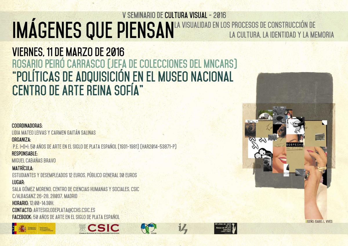 Organiza: Seminario de Cultura Visual. P.E. I+D+i: 50 años de arte en el Siglo de Plata español (1931-1981) (HAR2014-53871-P). Responsable: Miguel Cabañas Bravo (IH, CCHS-CSIC)